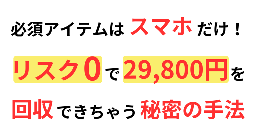 保護中: 必須アイテムはスマホだけ!リスク0で29,800円を回収できちゃう秘密の手法